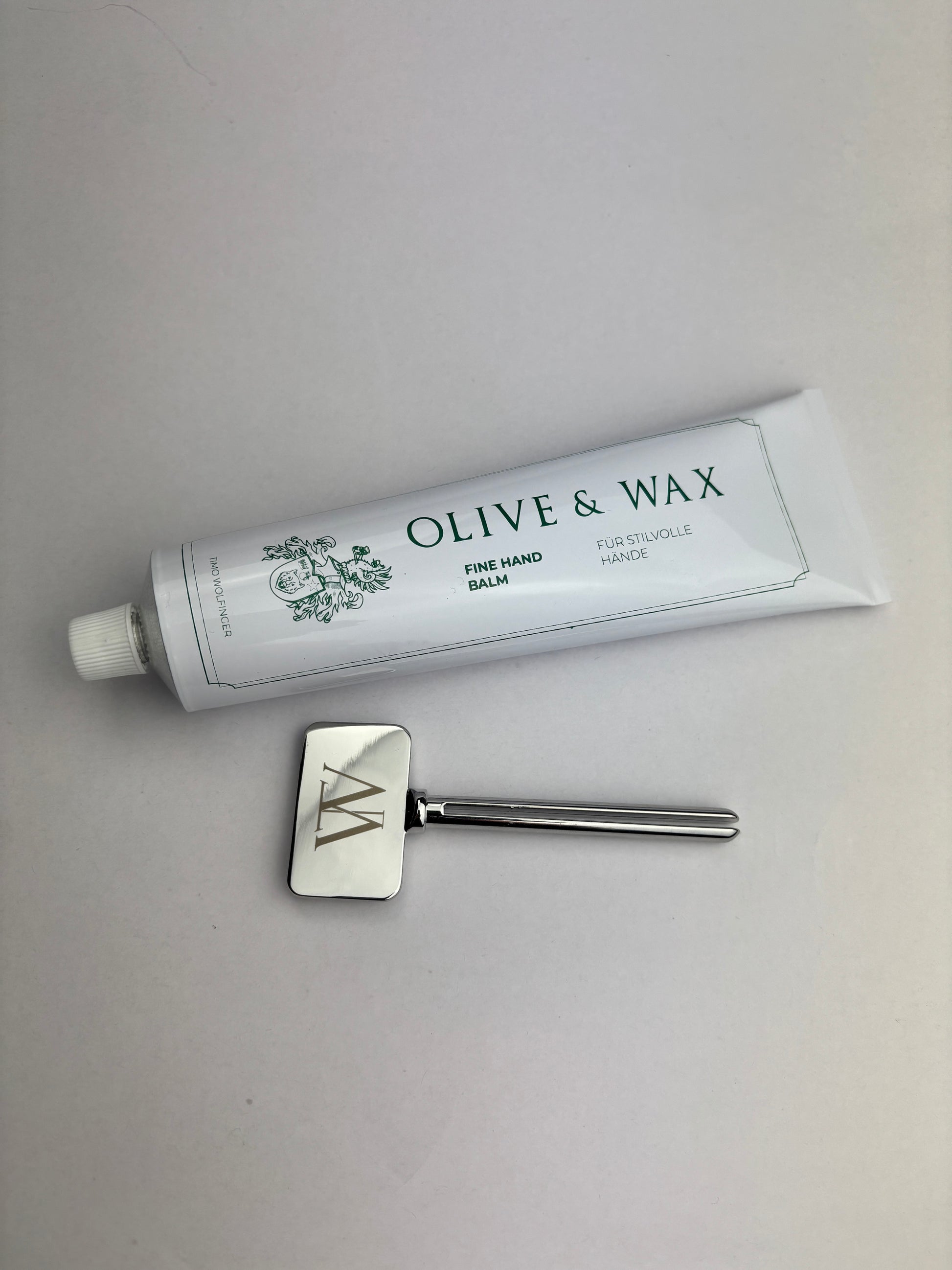 Jede Tube kommt mit einem hochwertigen Tubenschlüssel mit dem original Timo Wolfinger Siegel – ein elegantes Accessoire, das Funktion und Ästhetik perfekt vereint. Dieses Set ist ausschließlich während des Presales erhältlich.